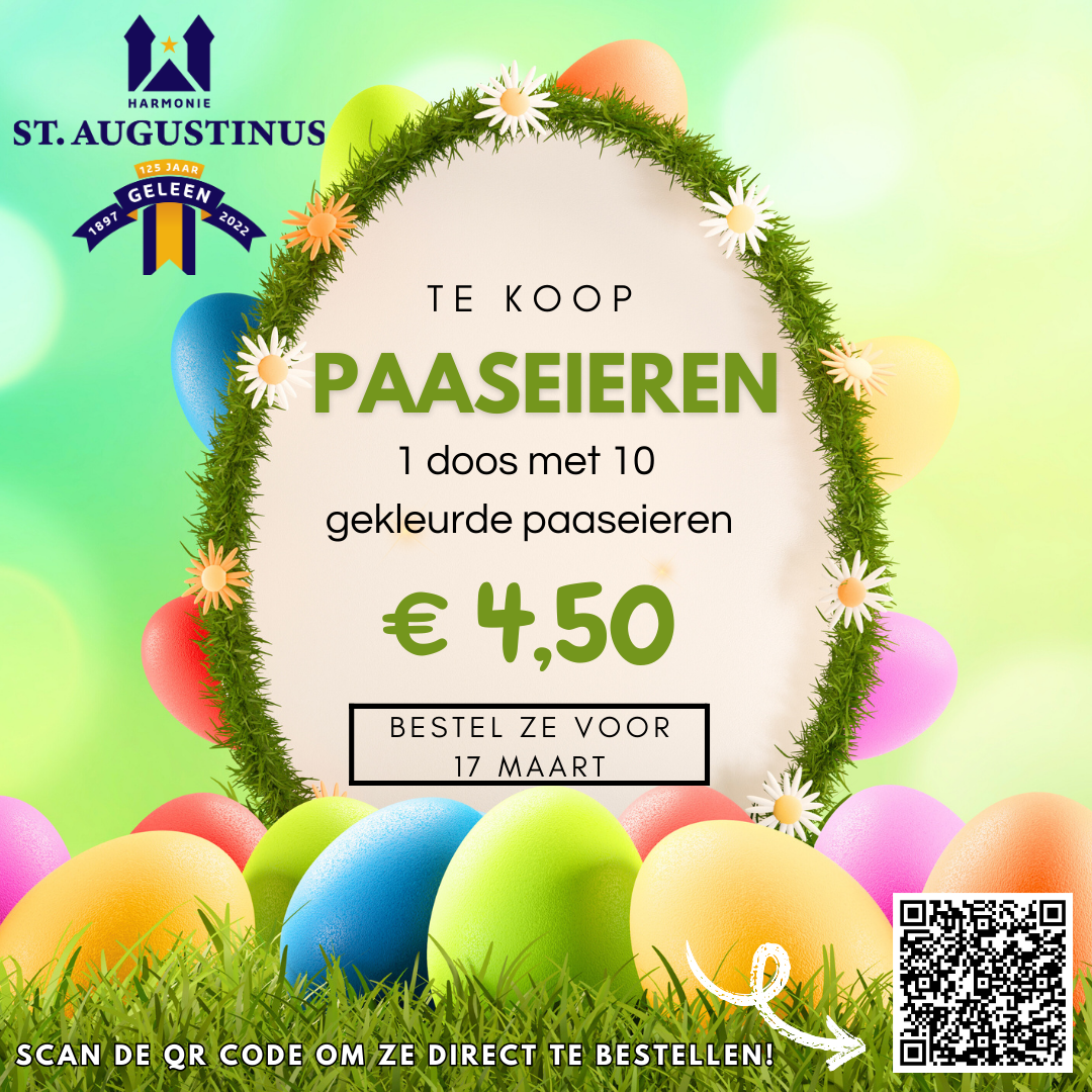 Ook dit jaar is het weer mogelijk om bij Harmonie Sint Augustinus uw paaseieren te bestellen! Door een bestelling te plaatsen steunt u onze vereniging, zodat wij u weer kunnen uitnodigen voor één van onze mooie concerten of andere activiteiten.