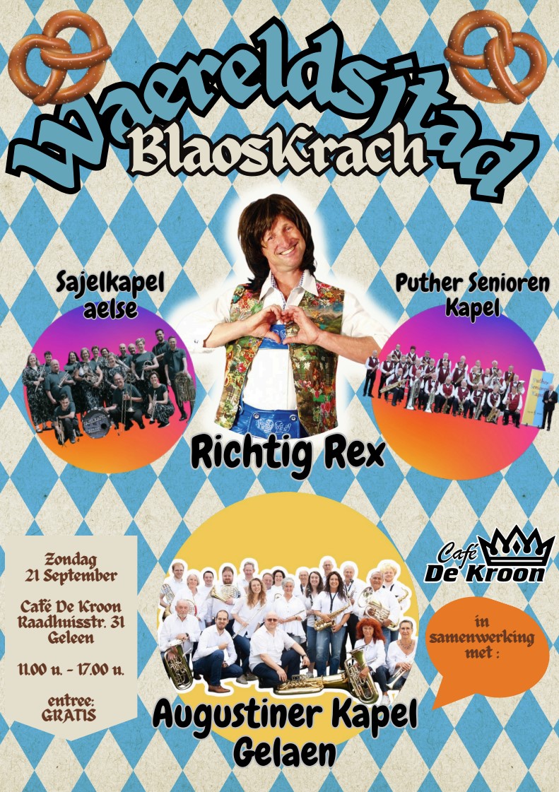 De Augustinerkapel van Harmonie St Augustinus organiseert op zondag 21 september 2025 Waereldsjtad Bloaskrach. Dit fantastisch evenement start om 11.00 uur.